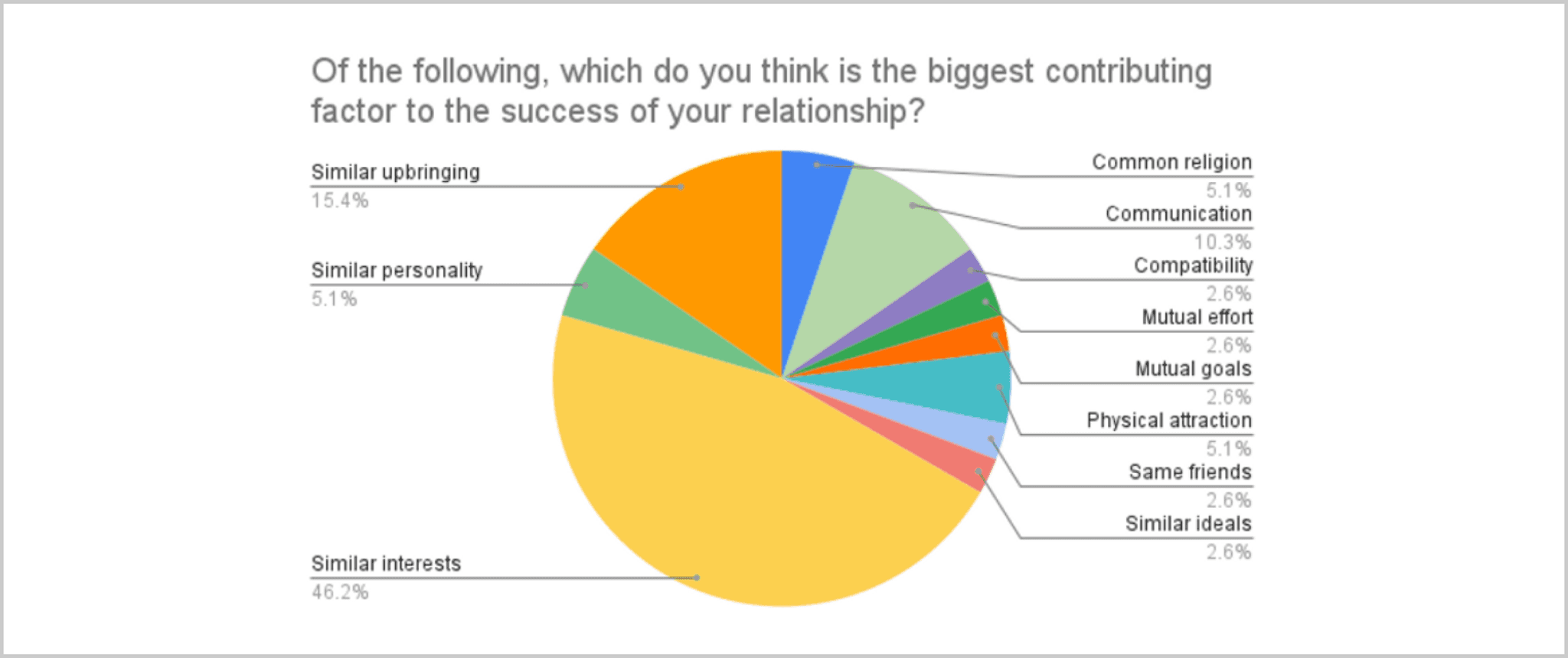 46% of people in a relationship or married said the biggest contributing factor to the success of their relationship is similar interests