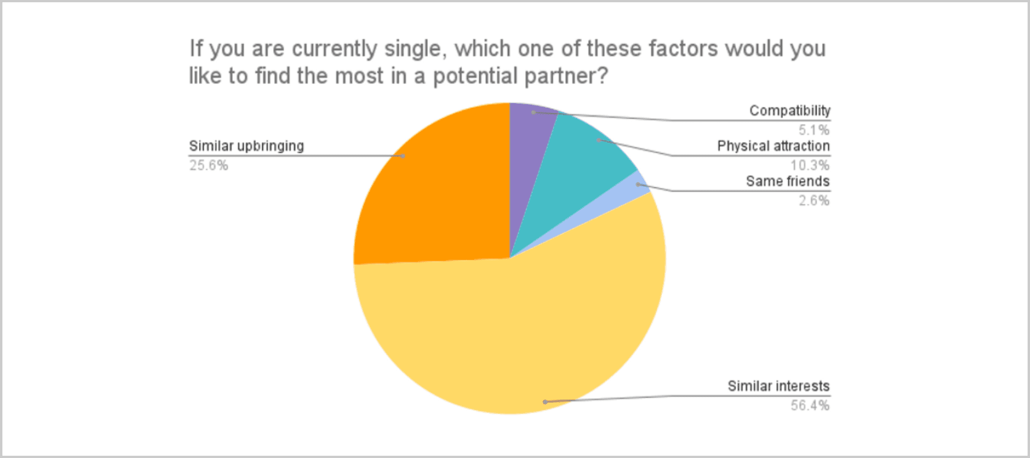 56% of singles said the factor they would like to find the most in a potential partner is similar interests