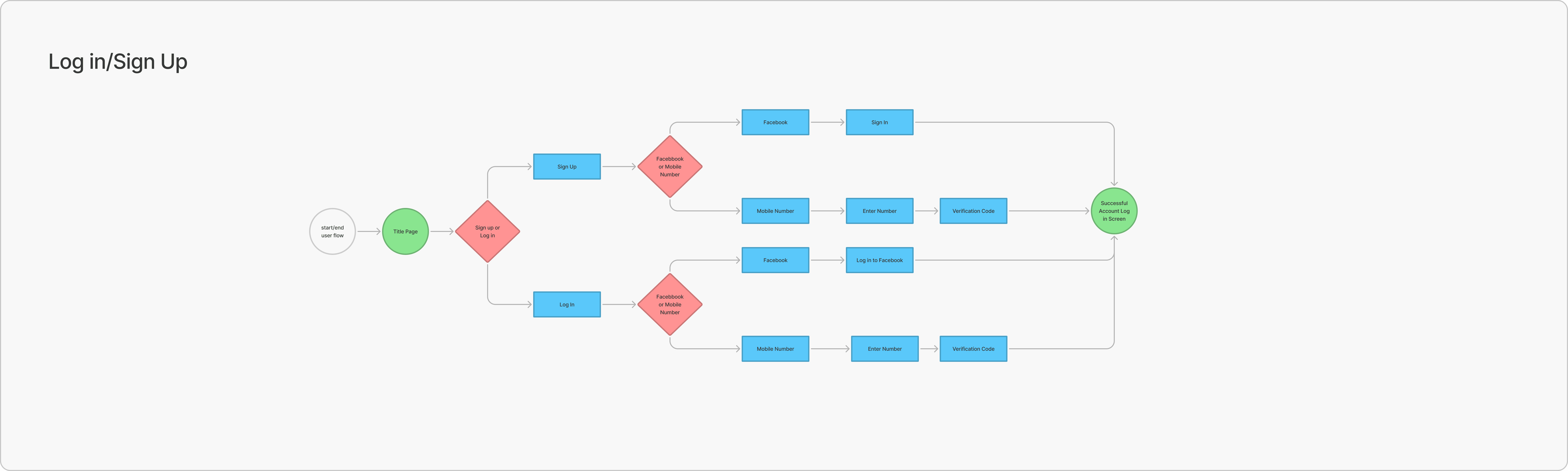 I divided my project into five separate flows when creating low fidelity wireframes.