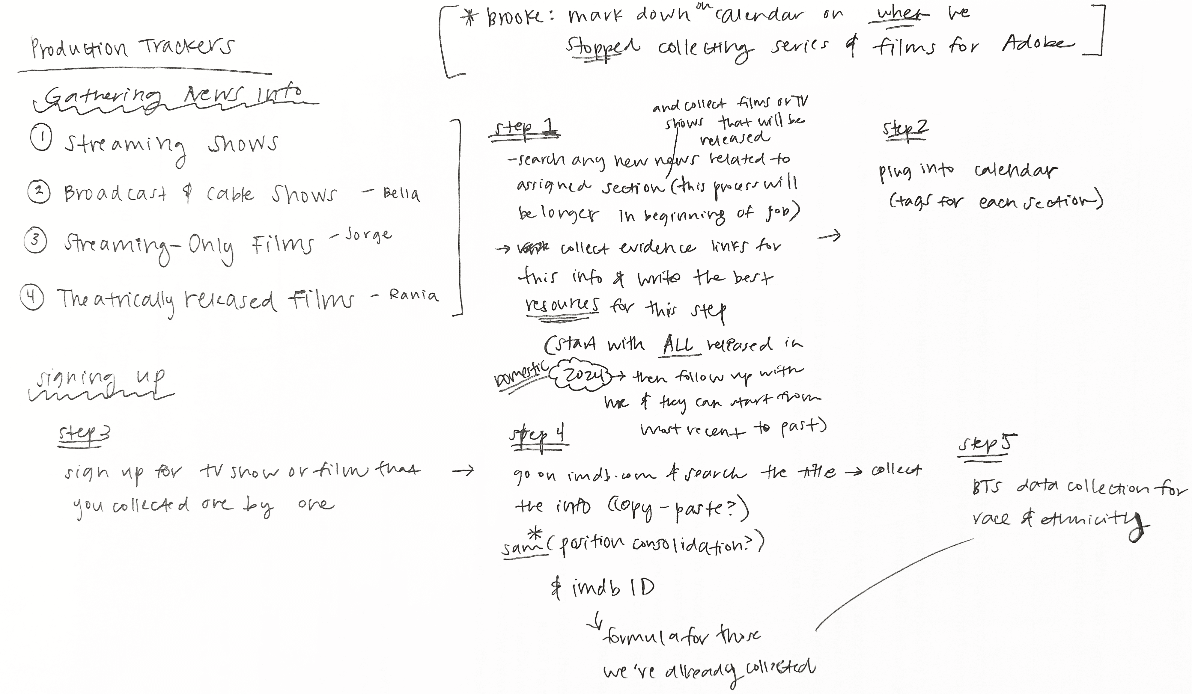 The Production Tracking Team now operates smoothly and collects inclusion data on theatrical films, streaming films and series, and broadcast and cable series.