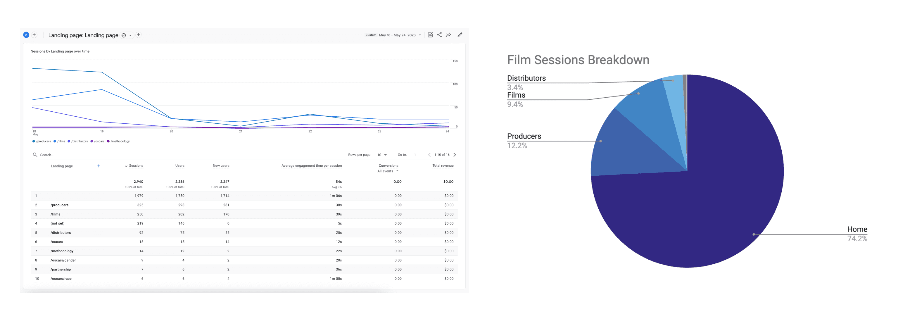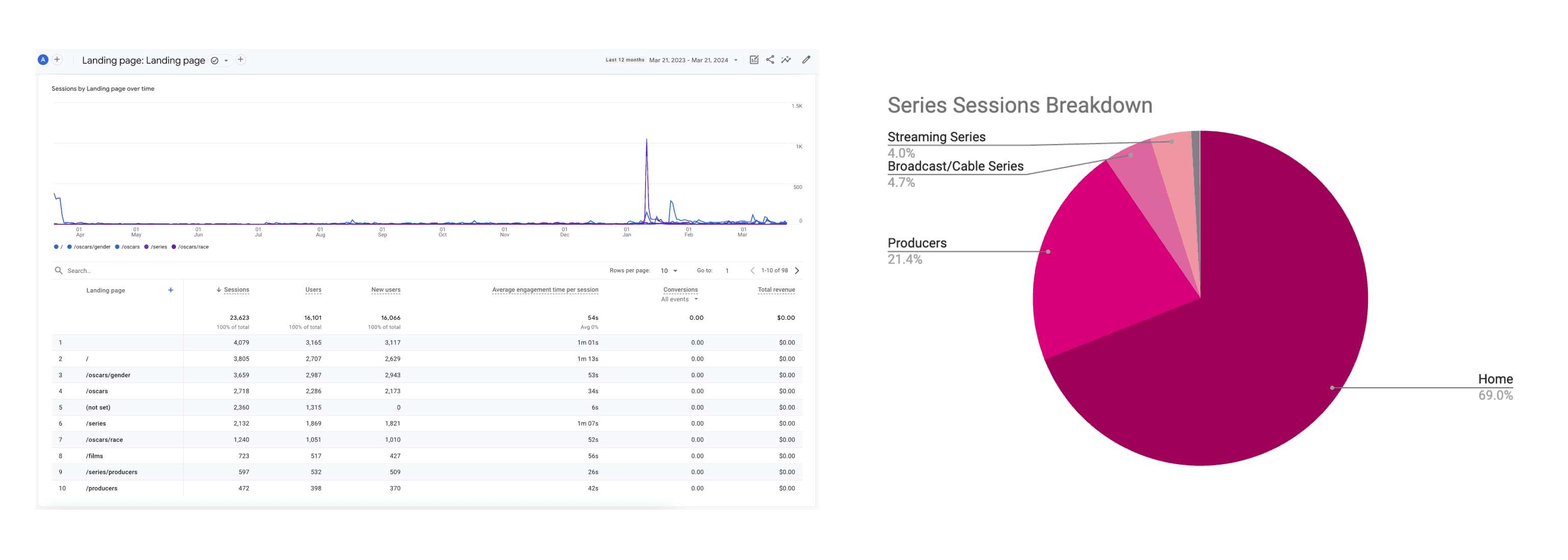 The website received press from various news outlets such as Variety, Deadline, The Hollywood Reporter, USA Today, Fortune, and more. Average engagement time increased by 45%.
