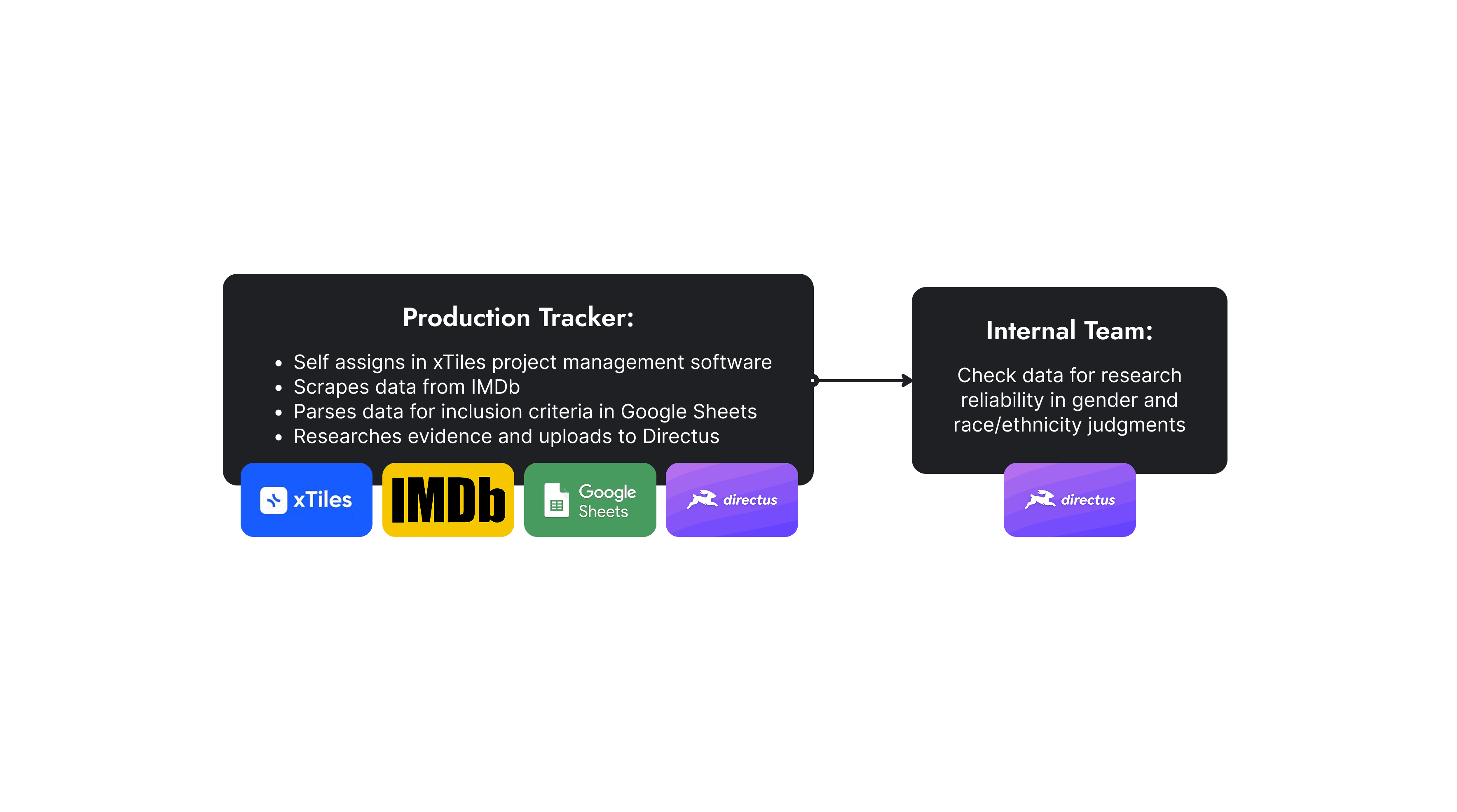 As part of the Annenberg Inclusion Initiative, the leading think tank studying diversity in entertainment, I led a redesign of our data collection workflow for capturing gender and race/ethnicity of individuals working in film and television. Our original process heavily relied on Google Sheets and Google Docs which created data inconsistencies and bottlenecks across teams.