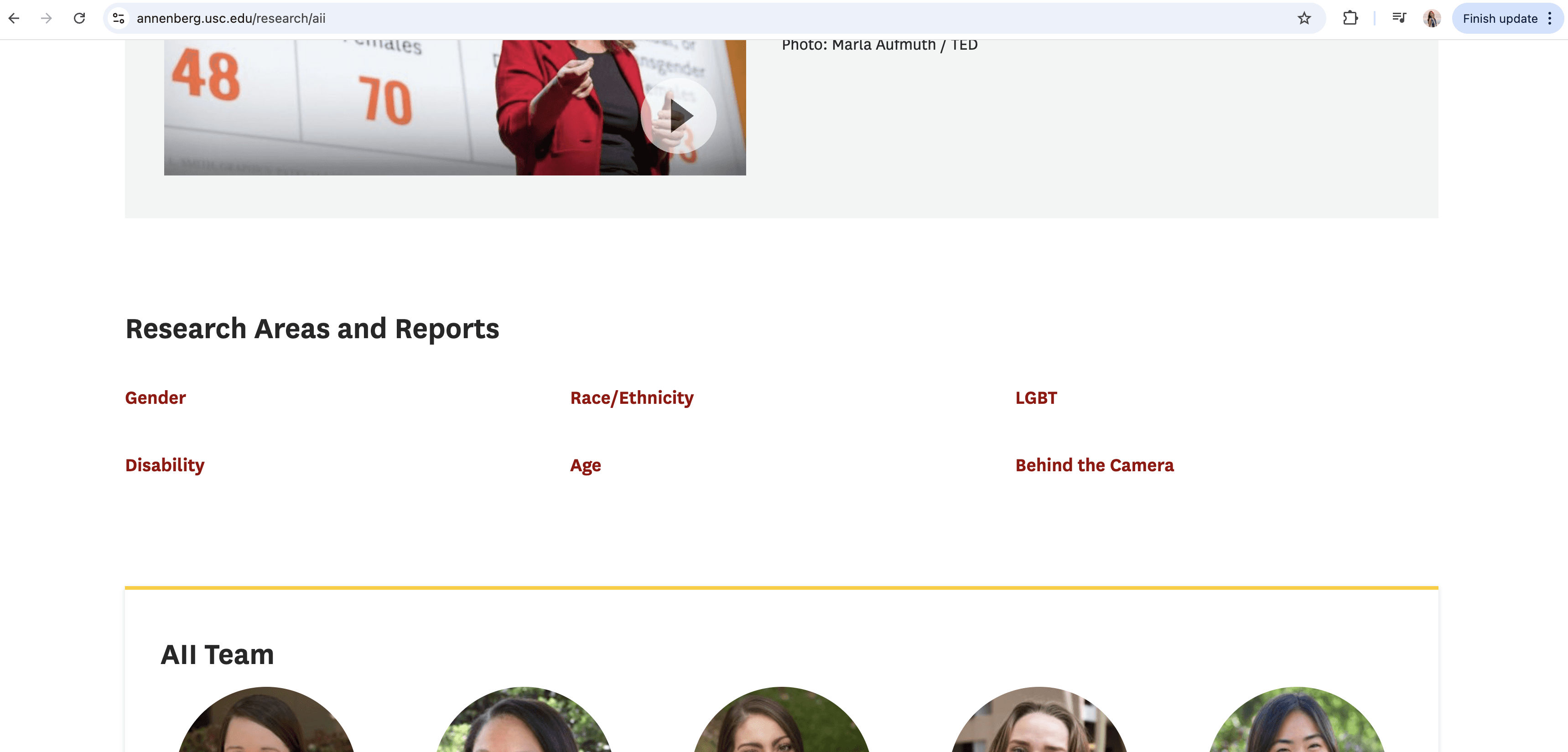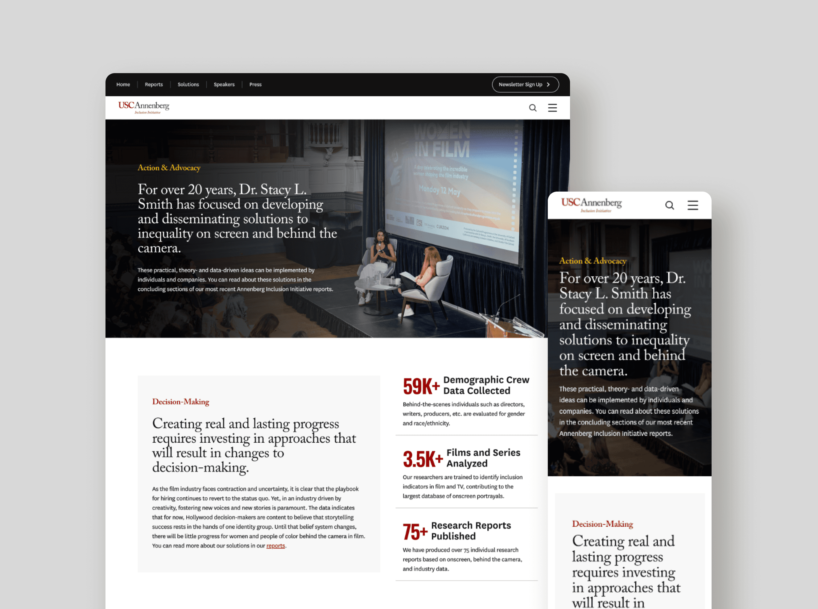 The USC Annenberg Inclusion Initiative (AII) is the leading think tank in the world studying inclusion in entertainment. While the organization’s research is widely cited, its website lacked the clarity, structure, and storytelling power to effectively communicate its mission and extensive body of work.